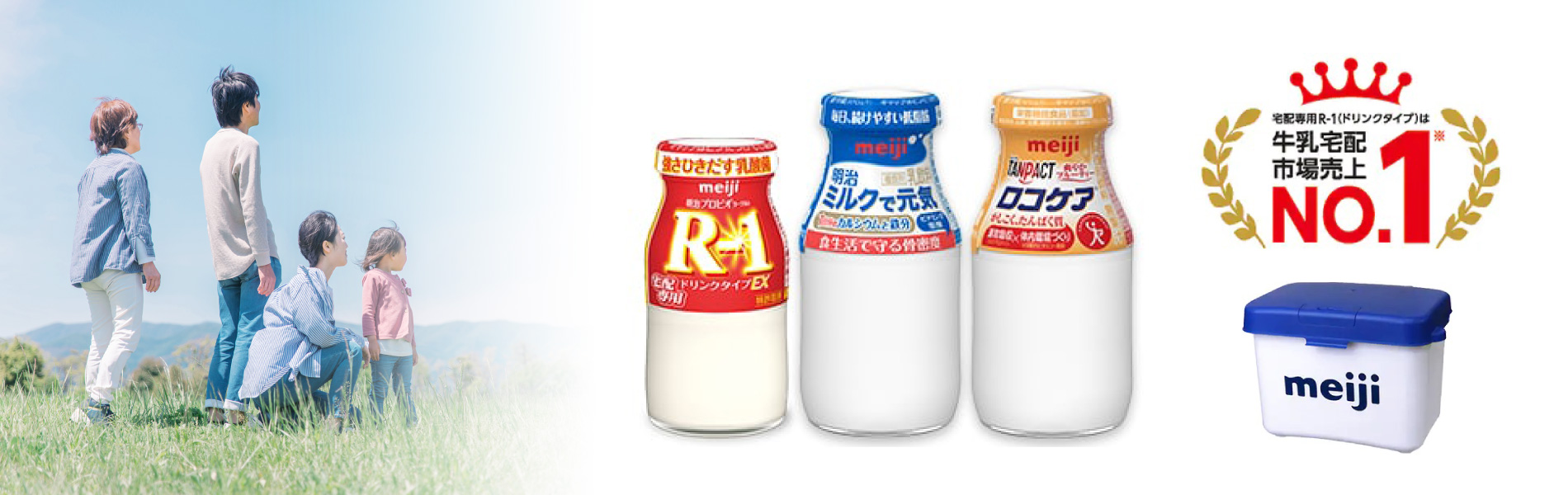 明治の宅配サービスなら人気の明治プロビオヨーグルトR-1をはじめとする宅配専用商品をご自宅までお届け!たんぱく質・カルシウムなどの栄養を手軽においしく摂りたい方へ、牛乳・ヨーグルト・健康サポート飲料を1本から月極で配達します!